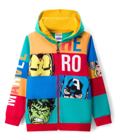 Pine Kids Marvel Terry Knit Full Sleeves Hooded Sweatjacket with Avengers Graphics – Multicolor